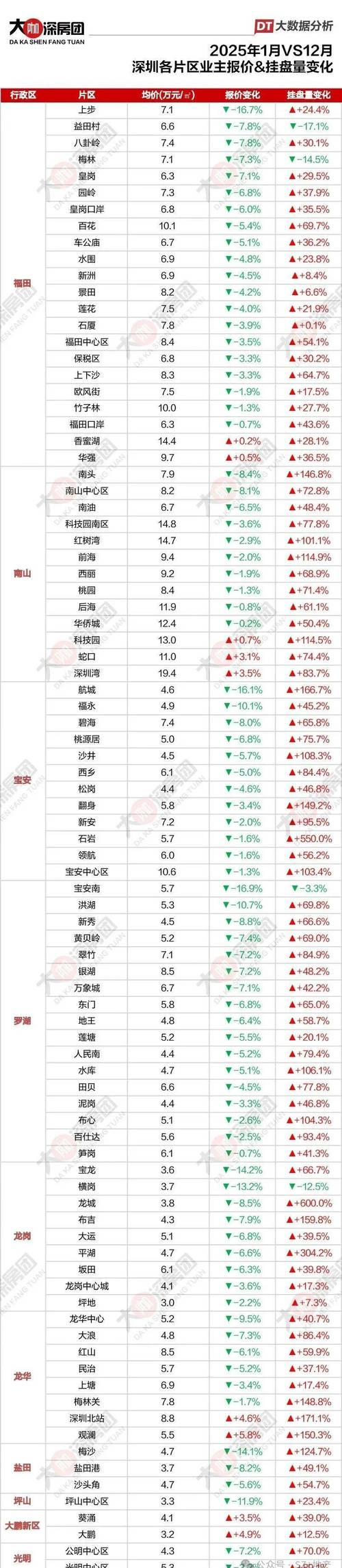 2025年末深圳楼市最新消息:区域分化大,多区房价下跌2025年深圳楼市整体呈现“卖方让利、买方观望”格局,89个片区中80个报价下跌。南山区的深圳湾、科技园南...