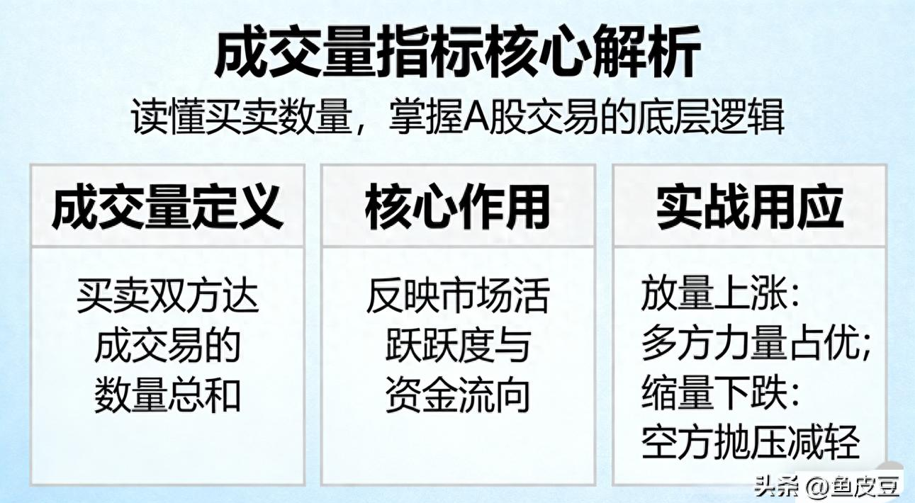 A股成交量暗藏底层逻辑,掌握解析方法找到买卖信号成交量是A股技术分析的核心指标,反映真实买卖数量,领先股价走势。股价涨跌可伪装,但成交量不会说谎。上涨伴随资金持...